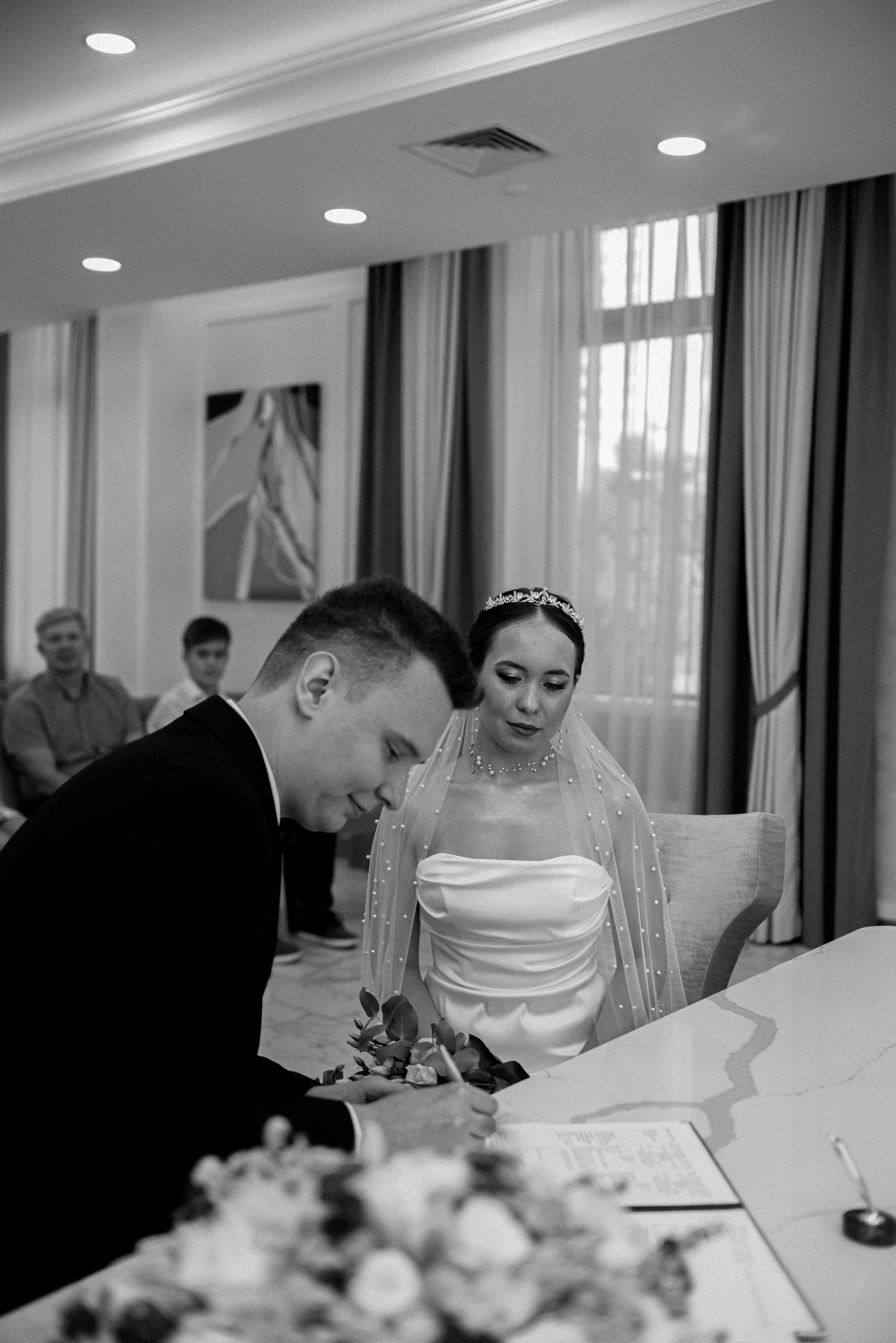 Молодожены подписывают акт о заключении брака