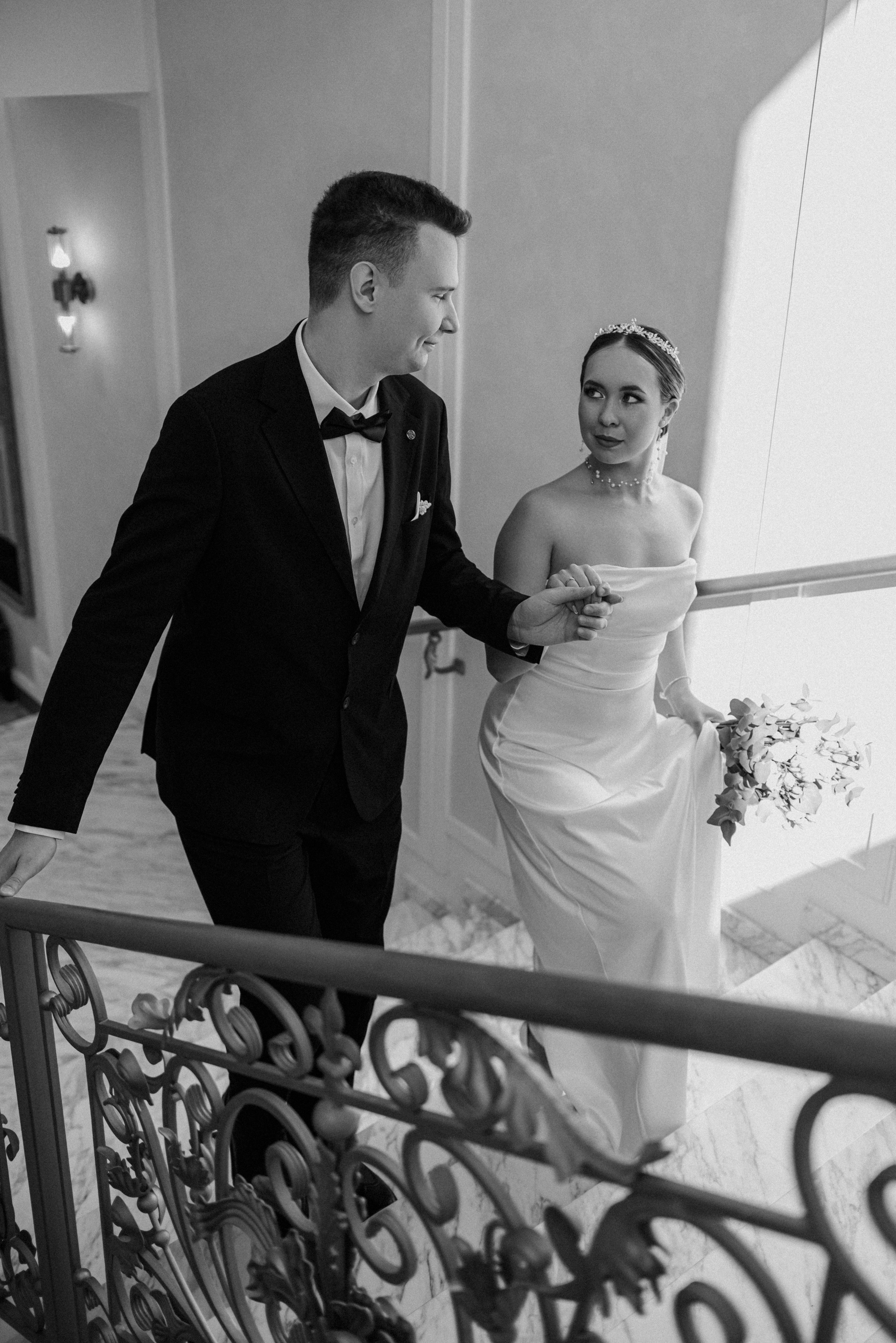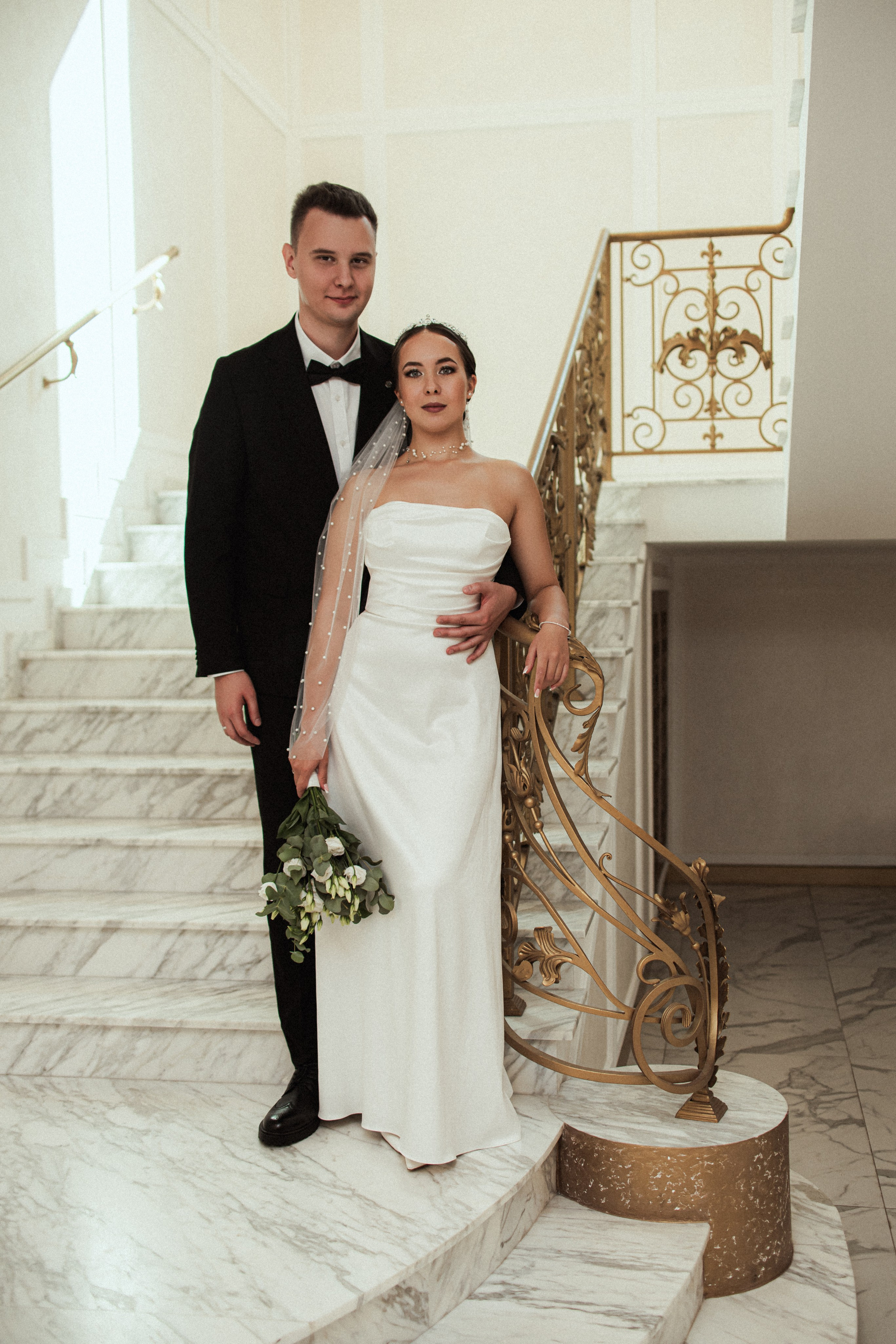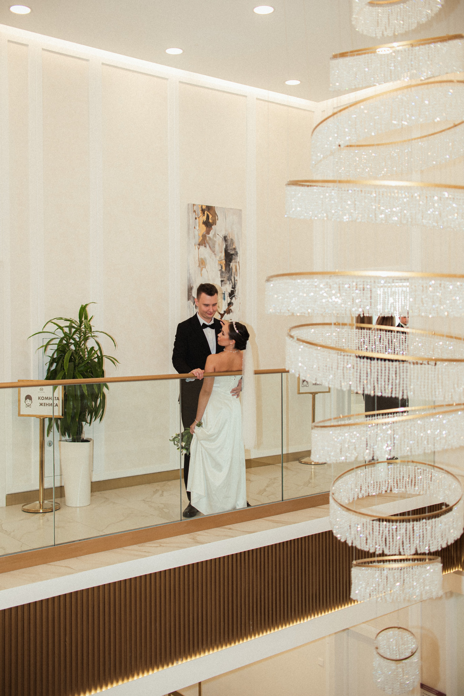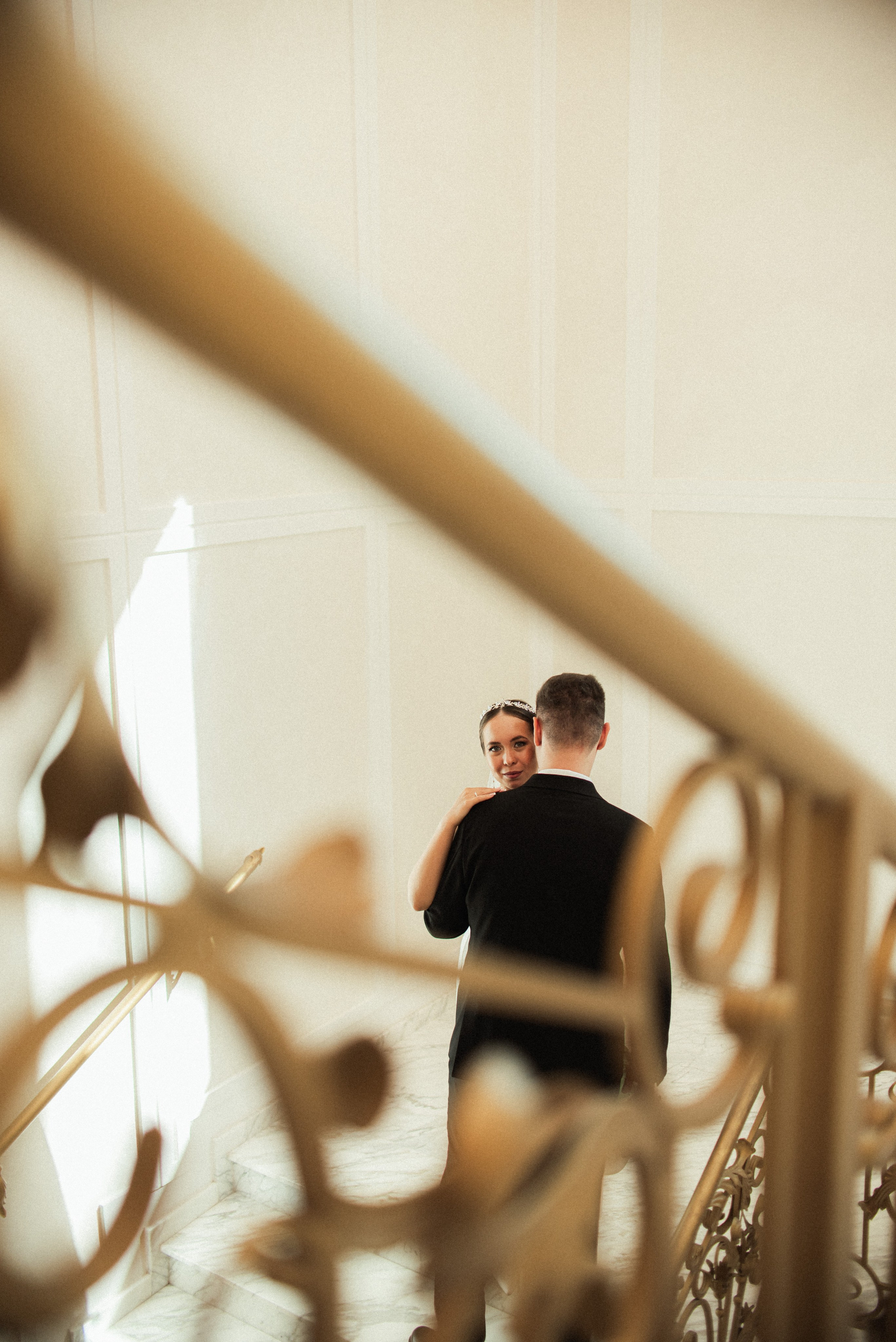 Красивый кадр на лестнице в ЗАГСе Южное Бутово
