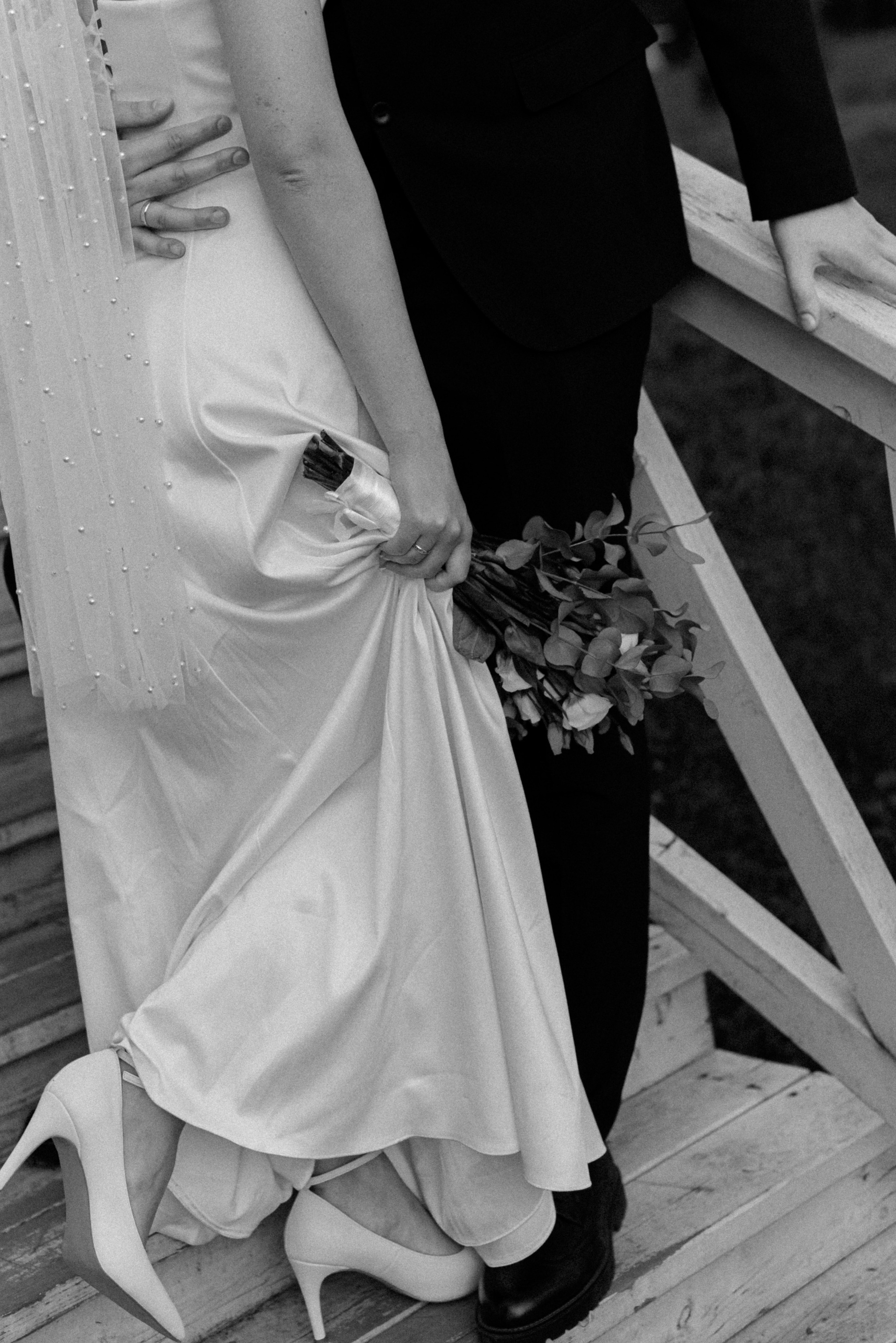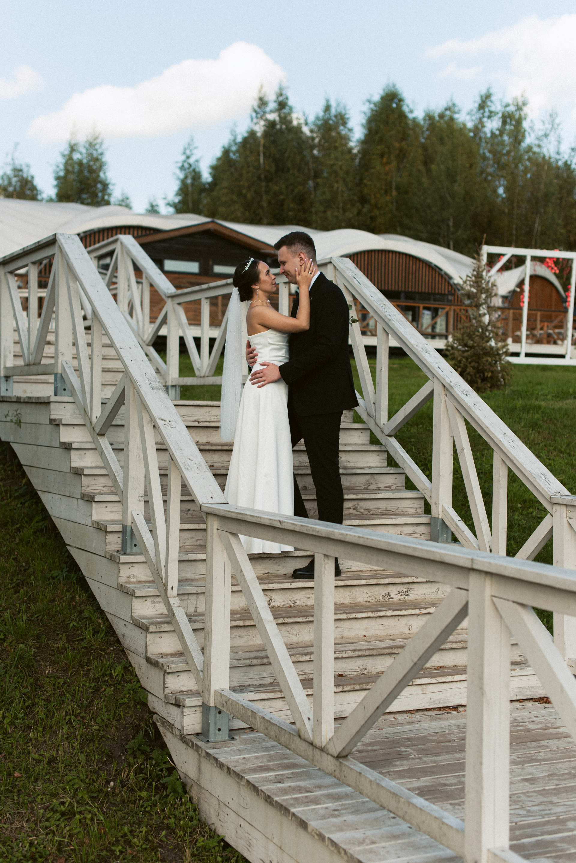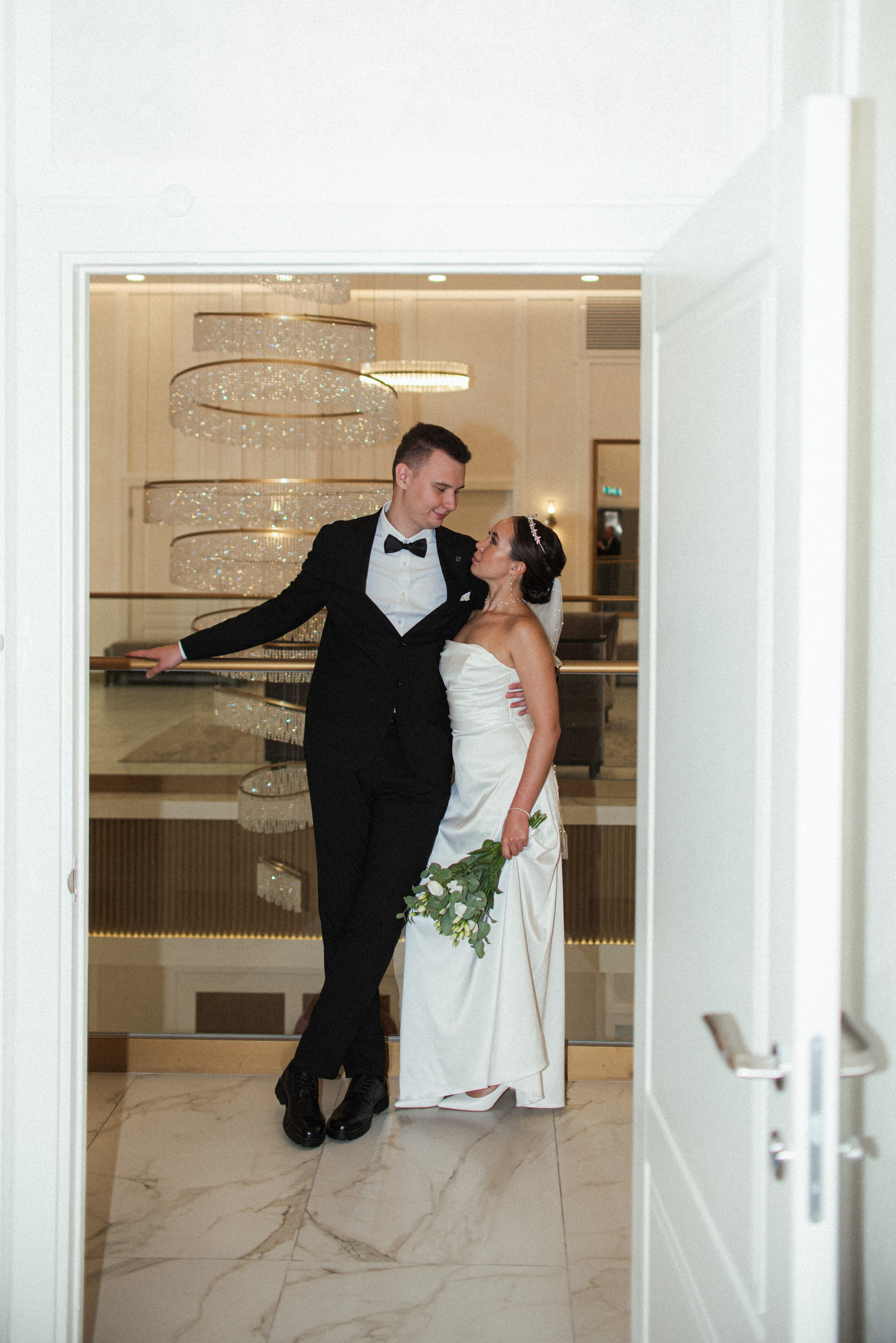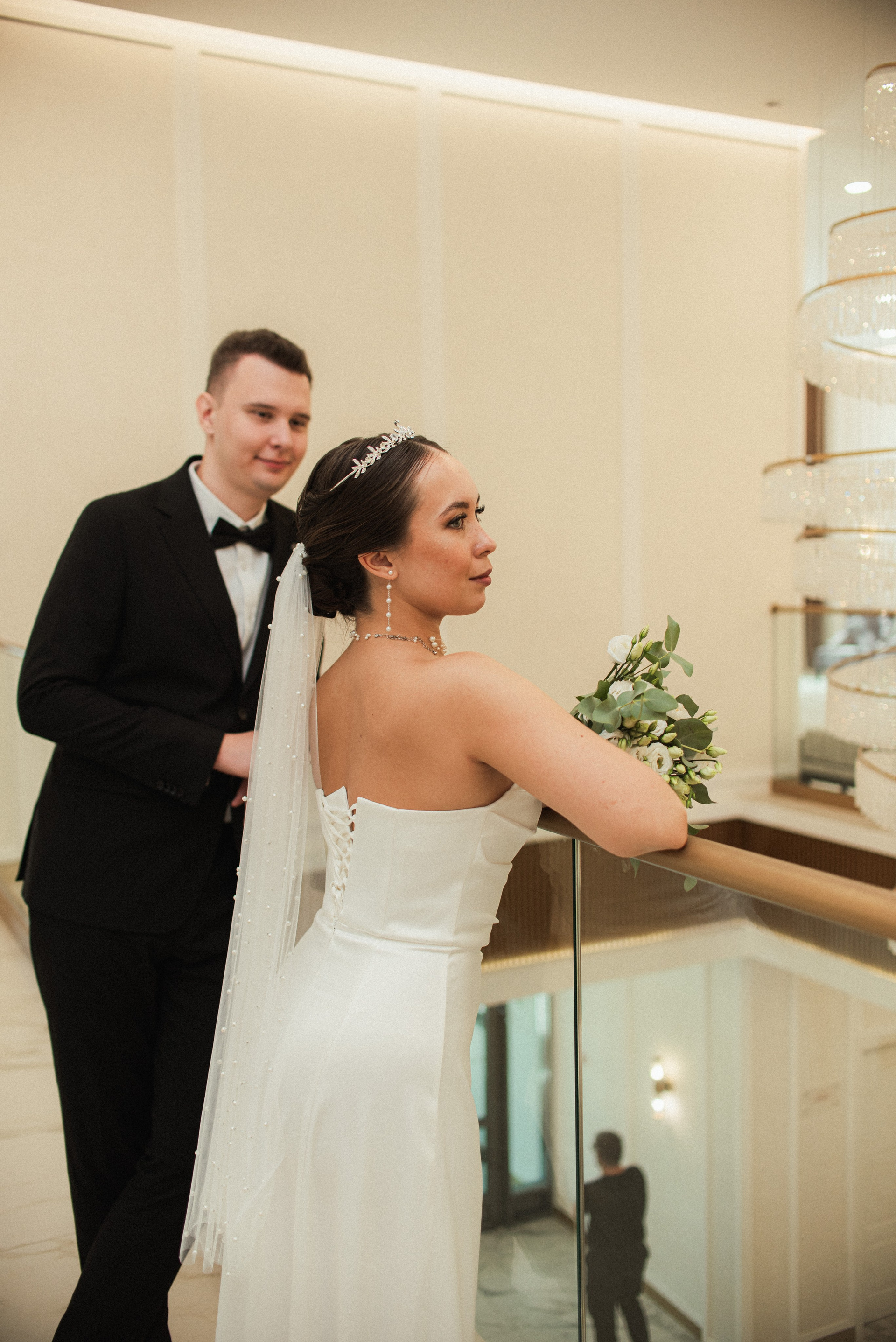 Красивый кадр на лестнице в ЗАГСе Южное Бутово