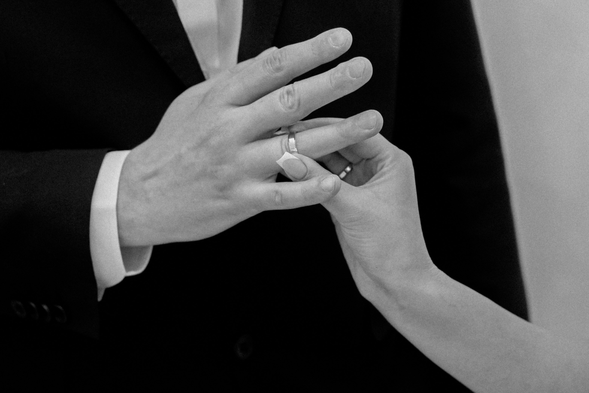 Невеста одевает жениху кольцо